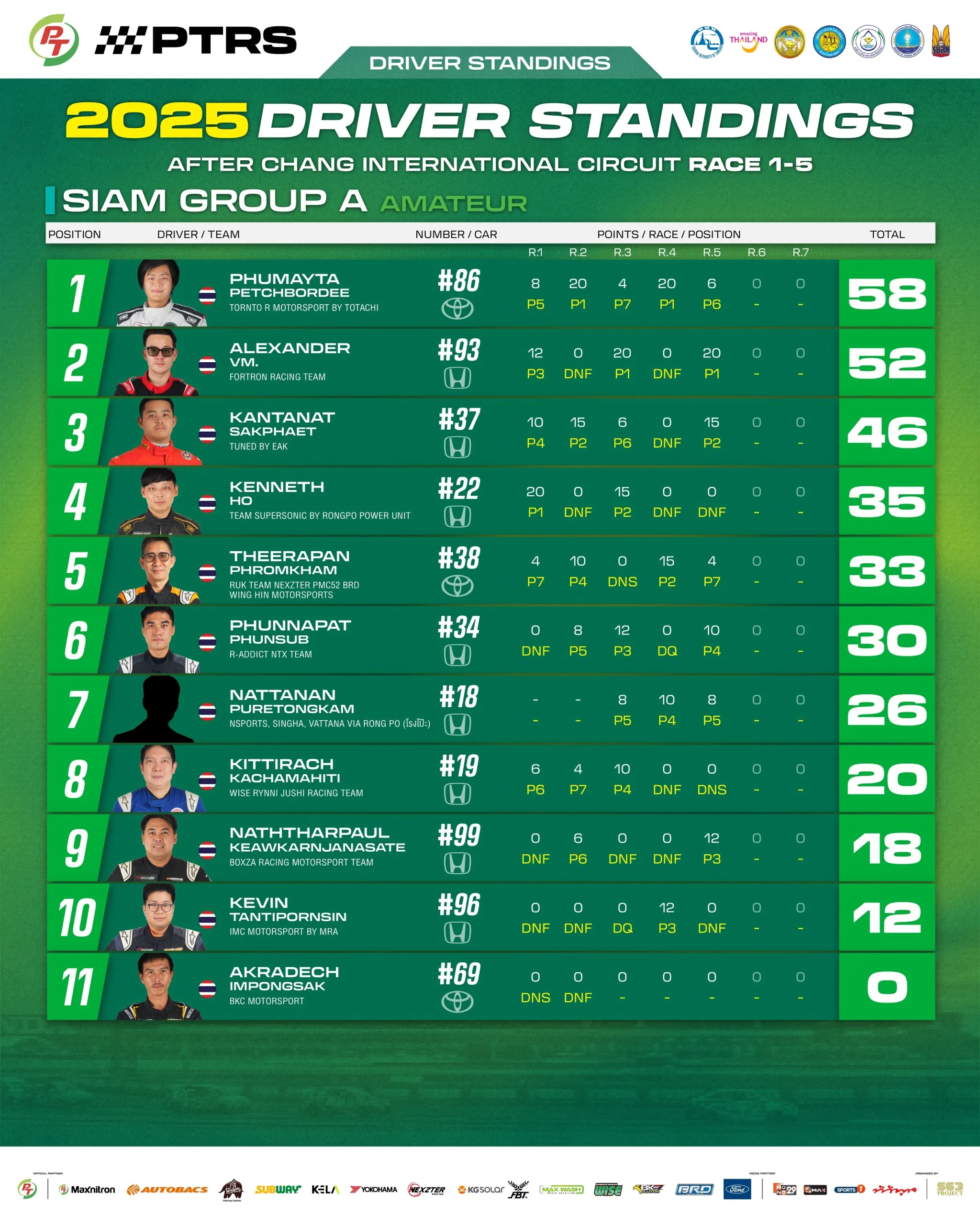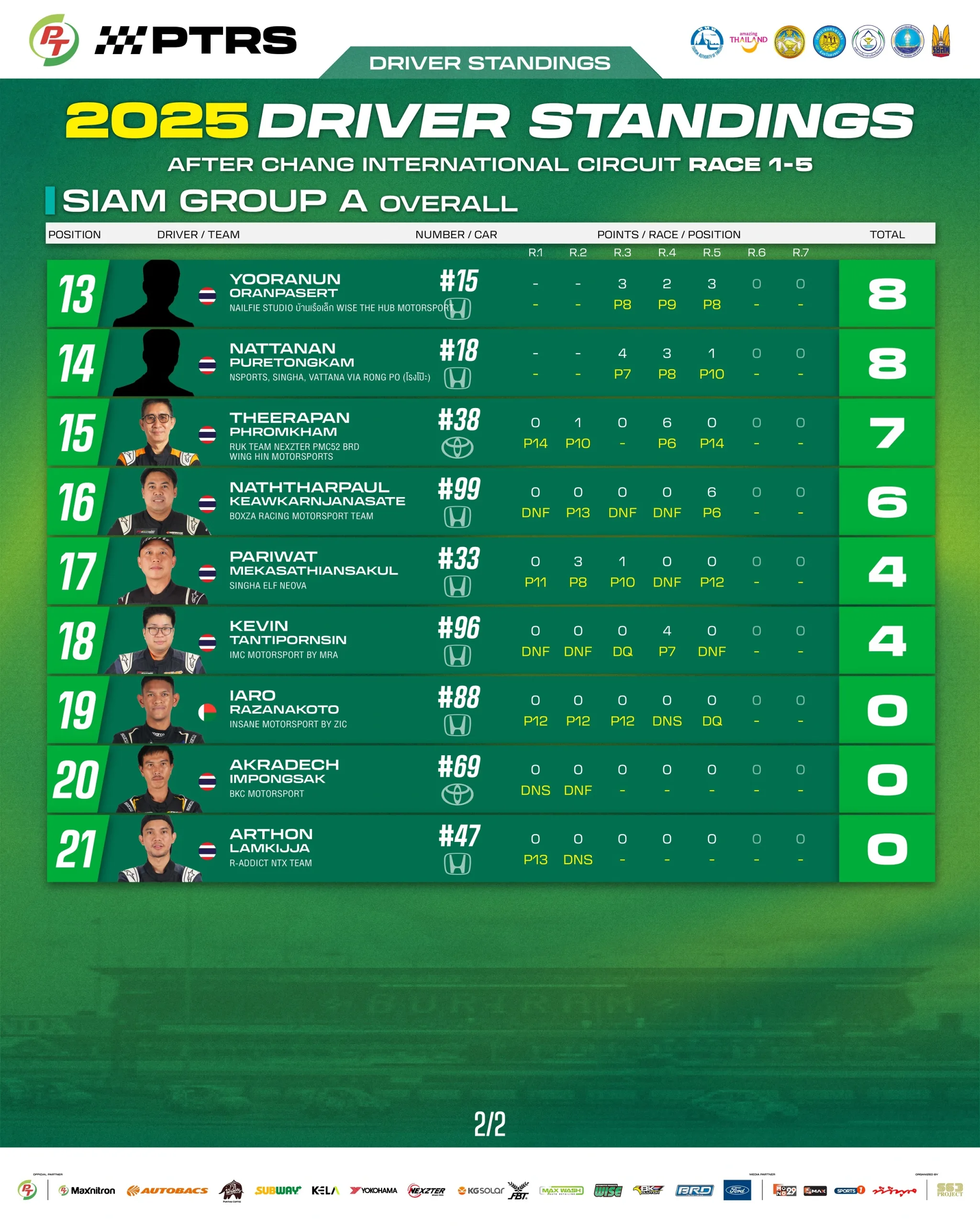 Driver Standings – SIAM GROUP A